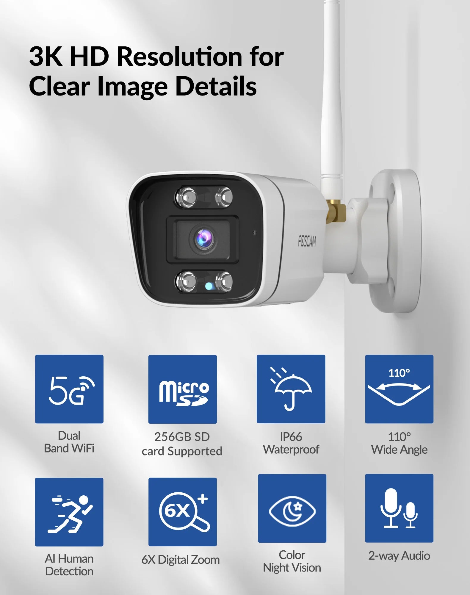 Expertly monitor your surroundings with the Foscam V5P 5MP WiFi Security Camera. Enjoy crystal clear 5MP resolution and advanced smart detection technology, ensuring total coverage and accurate alerts. Stay connected, stay secure with the Foscam V5P.