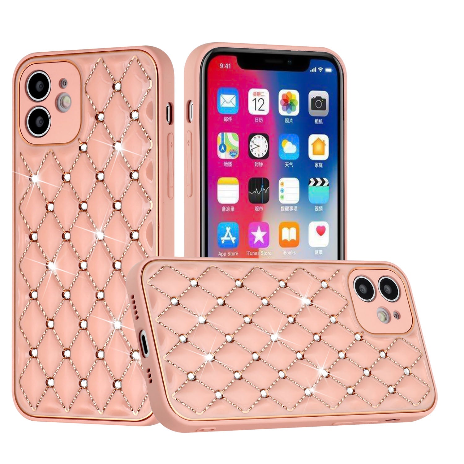 Introducing our Phone Case for iPhone 13 Pro - a royal electroplated diamond bling premium hybrid case cover in stunning rose gold. Protect your phone while making a fashion statement with this durable and stylish case. Perfect for those who want to add a touch of luxury to their phone.