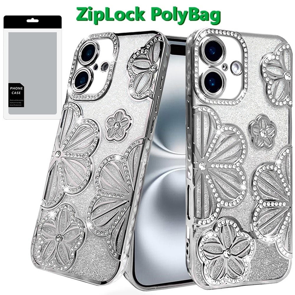 Elevate and protect your iPhone 16 6.1 inch with this shimmer glitter floral design thick TPU case cover. The silver tone complements the case's durable construction, which provides superior protection against drops and scratches. Keep your phone safe without sacrificing style.